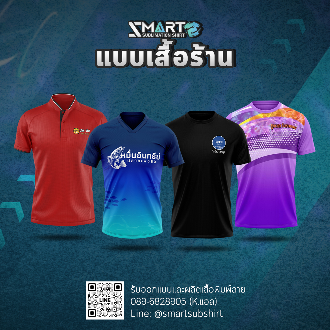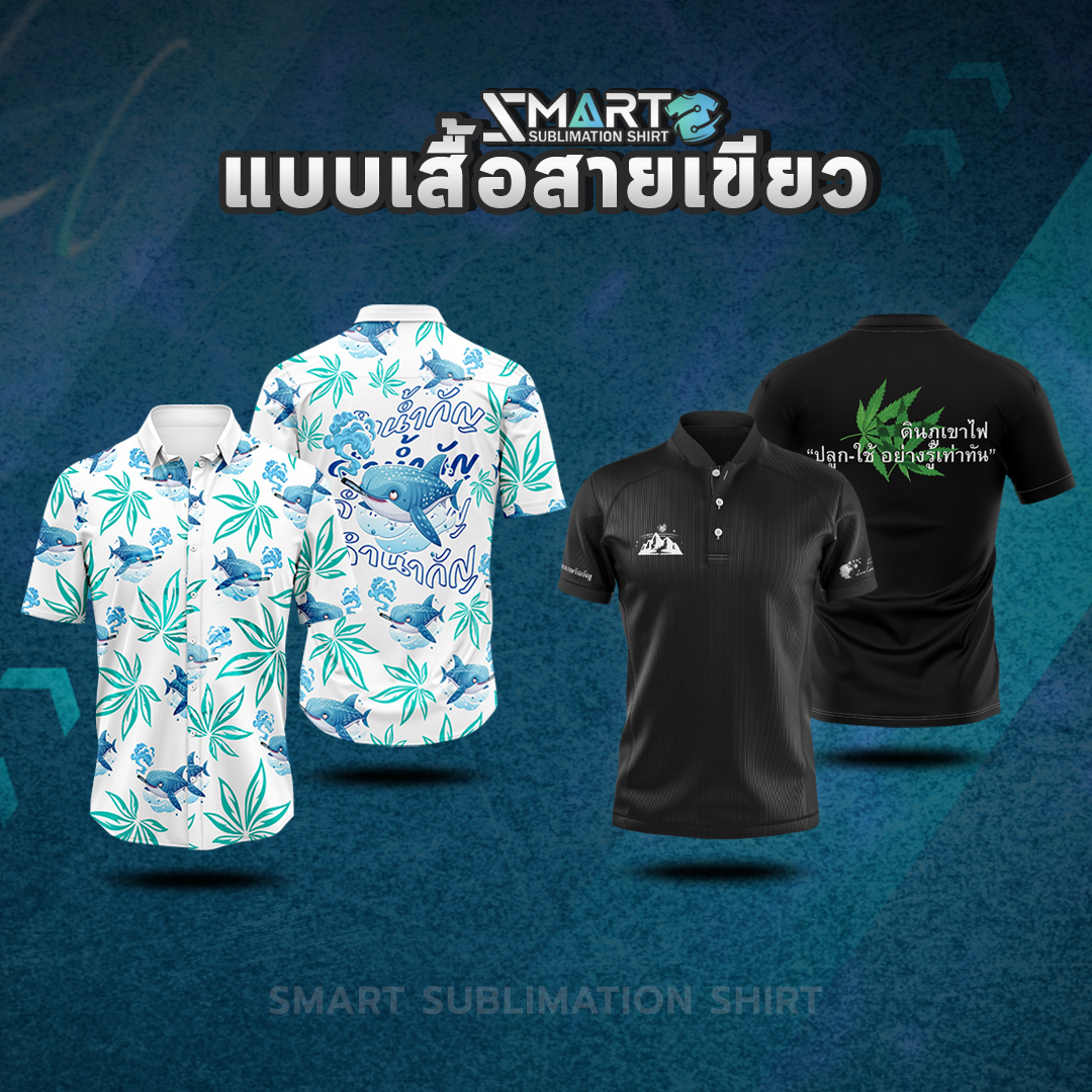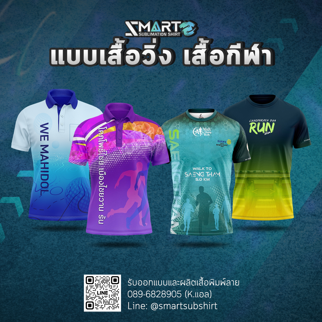 SMART SUBLIMATION SHIRT โรงงานรับออกแบบและผลิตเสื้อพิมพ์ลาย ครบวงจร เสื้อโปโล เสื้อคอกลม เสื้อคอจีน เสื้อคอวี เสื้อกล้าม เสื้อแขนยาว เสื้อแขนกุด แจ็คเก็ต เสื้อฮู้ด เสื้อเชิ้ต เสื้อฮาวาย งานพิมพ์คุณภาพคมชัด ตัดเย็บขึ้นใหม่ทุกตัว ออกแบบได้ตามต้องการ กำลังการผลิตสูง บริการครบวงจร จบงานได้ในที่เดียว มีสต็อกเนื้อผ้าให้เลือกผลิตกว่า 50 ชนิด งานพิมพ์ Digital Sublimation คุณภาพสูง ได้มาตรฐาน สั่งผลิต 50 ตัวขึ้นไป ออกแบบฟรี! ตัวอย่างงานออกแบบเสื้อ เนื้อผ้าแนะนำ! สำหรับผลิตเสื้อยืด เสื้อโปโล เสื้อแจ็คเก็ต เสื้อแขนยาว ดูเนื้อผ้าทั้งหมดของเรา >> ลูกค้าของเรา