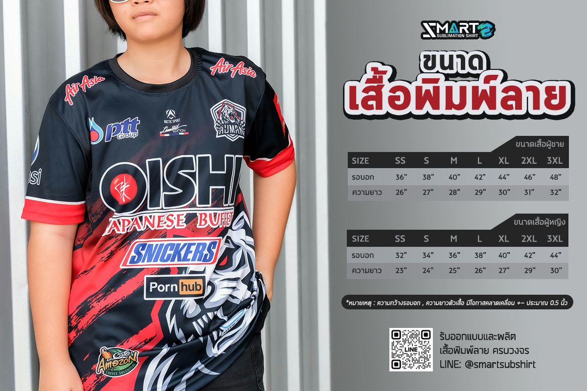 SMART SUBLIMATION SHIRT รับออกแบบและผลิตเสื้อพิมพ์ลายด้วยระบบ Digital Sublimation คุณภาพสูง บริการครบวงจร ไม่ว่าจะเป็นเสื้อโปโล, เสื้อคอจีน, เสื้อยืดคอกลม, เสื้อยืดคอวี, เสื้อแขนกุด, เสื้อกล้าม, เสื้อแขนยาว, แจ็คเก็ต, เสื้อฮู้ด, เสื้อเชิ้ต เรารับจบทุกแบบทุกสไตล์ ผลิตใหม่ตามแบบตามไซส์ของลูกค้า ‘คุณภาพพรีเมี่ยม’สามารถออกแบบได้ตามสไตล์ที่คุณต้องการ ไม่ว่าจะเป็น คอเสื้อ สาปเสื้อ ชายเสื้อ กระเป๋าเสื้อ หรือปลายแขนเสื้อ ยินดีให้คำปรึกษาทั้งด้านดีไซน์, เนื้อผ้าที่เหมาะสมกับลักษณะการนำไปใช้, เทคนิคการผลิตที่เหมาะสมกับเนื้อผ้าแต่ละชนิด หรืออื่นๆ ตามที่ลูกค้าต้องการอยากให้เสื้อของคุณเป็นแบบไหน ไว้ใจให้เราเป็นผู้ช่วยของคุณ