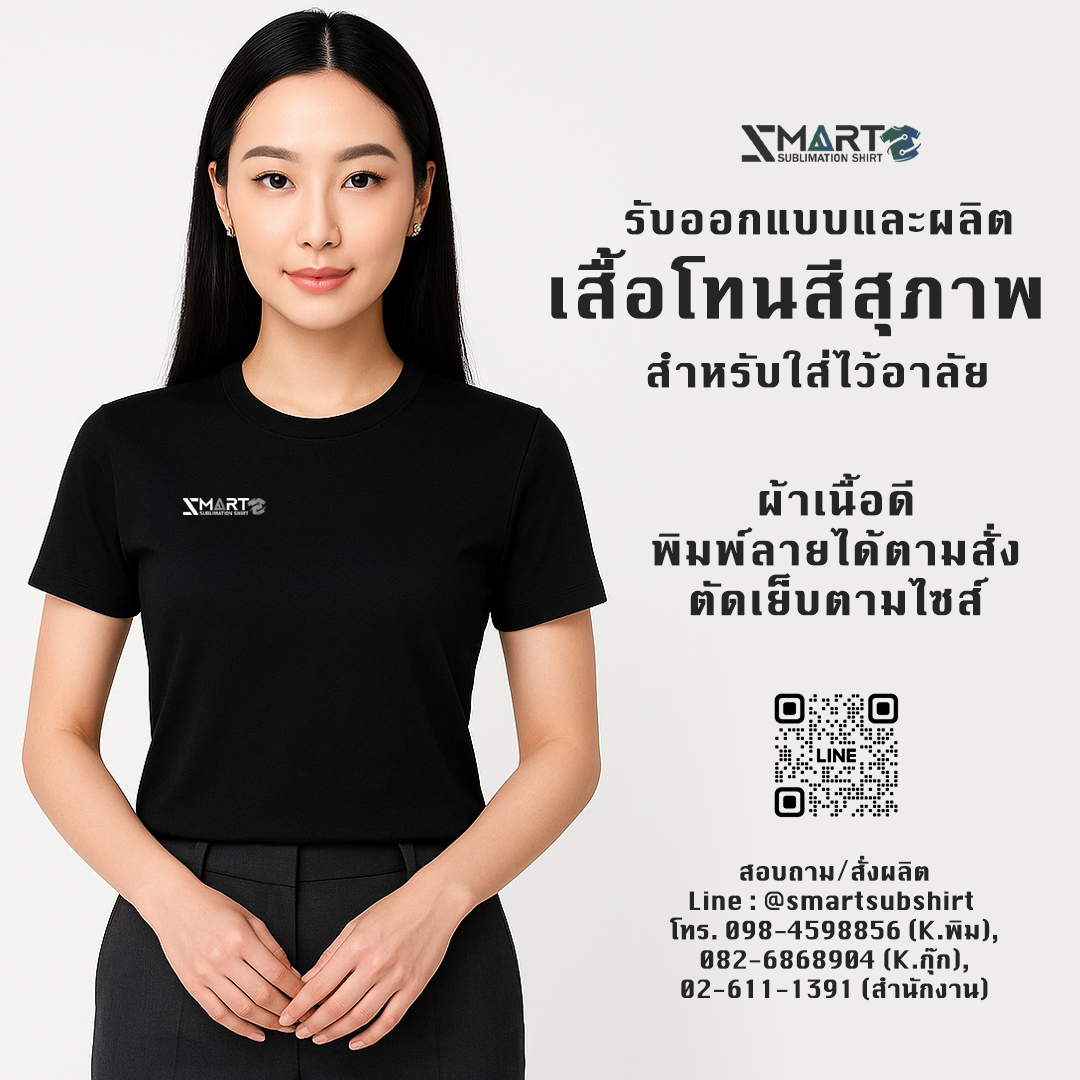 นอกจากนี้ ยังมีให้เลือกทั้ง แบบชายและหญิง รวมถึงสามารถเลือกออกแบบเพื่อพิมพ์ลายเฉดสีสุภาพได้หลากหลาย เช่น สีดำ เทา ขาว หรือครีม เพื่อให้เข้ากับเอกลักษณ์ของแต่ละองค์กร